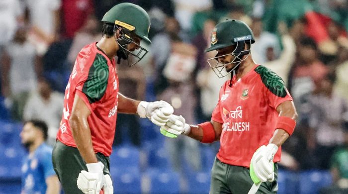 পাওয়ার প্লে’তে যেভাবে ব্যাটিং করলো বাংলাদেশ দল, সেভাবে শেষের দিকে রান নিতে পারলো না। ফলে স্কোরবোর্ডে যতটা বেশি রান ওঠার কথা ছিল ততটা উঠলো না। তবুও, আফগানিস্তানের সামনে চ্যালেঞ্জিং স্কোর দাঁড় করালো বাংলাদেশ। টস জিতে ব্যাট করতে নেমে নির্ধারিত ২০ ওভারে ৫ উইকেট হারিয়ে বাংলাদেশ সংগ্রহ করেছে ১৫৪ রান। ৩১ বলে সর্বোচ্চ ৫২ রান করেছেন তানজিদ হাসান তামিম।