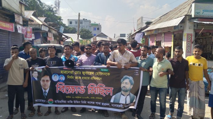 সোমবার (২০ অক্টোবর) কলেজ ছাত্রদলের নেতৃবৃন্দের ডাকে এই বিক্ষোভ মিছিল ও প্রতিবাদ সভা অনুষ্ঠিত হয়।