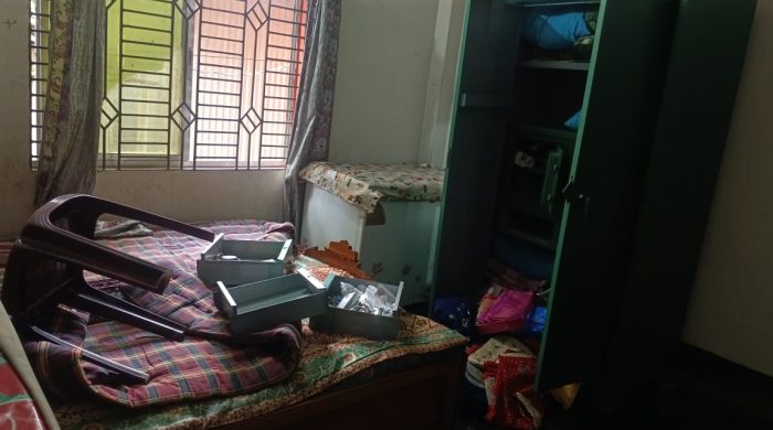 তাৎক্ষণিকভাবে তিনি বাড়িতে ফিরে গেটের তালা ভাঙা অবস্থায় দেখতে পেয়ে ভিতরে প্রবেশ করেন তিনি জানান, তারা ঘরের তিনটি কক্ষের দরজা, জানালা, আলমারি, শোকেসসহ বিভিন্ন আসবাবপত্র তছনছ করে ঘরে থাকা বিভিন্ন ইলেকট্রনিক্স মালামাল এবং আলমিরার ড্রয়ারে রাখা ২৪/২৫ ভরি ওজনের স্বর্ণালংকার এবং মূল্যবান মালামাল লুট করে নিয়ে যায়।