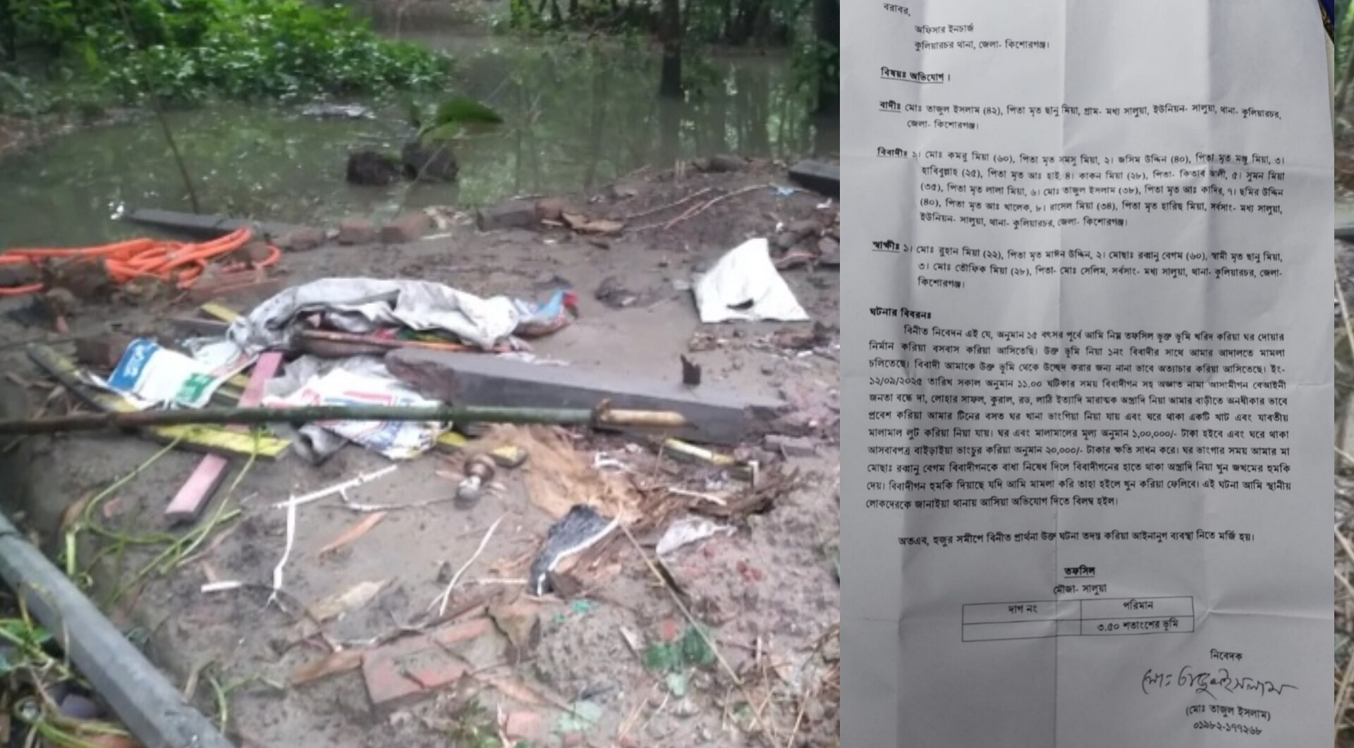 নিজস্ব প্রতিনিধিঃ কিশোরগঞ্জের কুলিয়ারচরে সালুয়া গ্রামে জমি সংক্রান্ত বিরোধের জেরে বৃদ্ধা রব্বানুর বসত ঘর ভেঙে নেয়ার অভিযোগ পাওয়া গেছে কামরুজ্জামান কমরু মিয়া কমরু মিয়ার বিরুদ্ধে । এ ঘটনায় বৃদ্ধা রব্বানুর পুত্র তাজুল ইসলাম বাদী হয়ে কমরু মিয়াসহ ৮ জনের বিরুদ্ধে কুলিয়ারচর থানায় লিখিত অভিযোগ দায়ের করেছে। এ ঘটনায় বৃদ্ধা রব্বানু ও তার পুত্র তাজুল ইসলাম সহ এলাকাবাসিরা জানান,তাজুল ইসলাম গত ১৫ বছর আগে তার পাশ্ববতী এনাম মিয়ার কাছ থেকে সাড়ে তিন শতাংশ জমি কিনে দখলে আছেন। কিন্তু এ ঘটনায় কমরু বেআইনী ভাবে ওয়ারিশ দাবি করে বিভিন্ন সময় তাজুল ইসলামের কাছে ২ লাখ টাকা দাবি করে হুমকি- ধমকি দিয়ে আসছে। টাকা না পেয়ে গত কয়েক দিন আগে কামরুজ্জামান কমরু মিয়া ও ফারুক হোসাইনের লোকজন তাজুল ইসলামের একটি অটোরিক্সা জোর করে ছিনিয়ে নিয়ে যায় । পরে স্থানীয় লোকজনের সহায়তায় ৫ দিন পর অটোরিক্সাটি ফেরত পান। এতে ক্ষিপ্ত হয়ে কামরুজ্জামান কমরু মিয়া ও ফারুক হোসাইনের লোকজন নিয়ে শুক্রবার প্রতিপক্ষের বসত ঘর ভেঙে টাকা পয়সা সহ স্বর্ণালঙ্কার নিয়ে যায় । এ ঘটনায় এলাকায় নিন্দার ঝড় বইছে । এ বিষয়ে জানতে প্রতিপক্ষ কামরুজ্জামান কমরু মিয়ার বাড়িতে গিয়ে তাকে পাওয়া যায়নি, পরে তার মোবাইলে যোগাযোগ করতে চাইলে ফোনটি বন্ধ পাওয়া যায়।