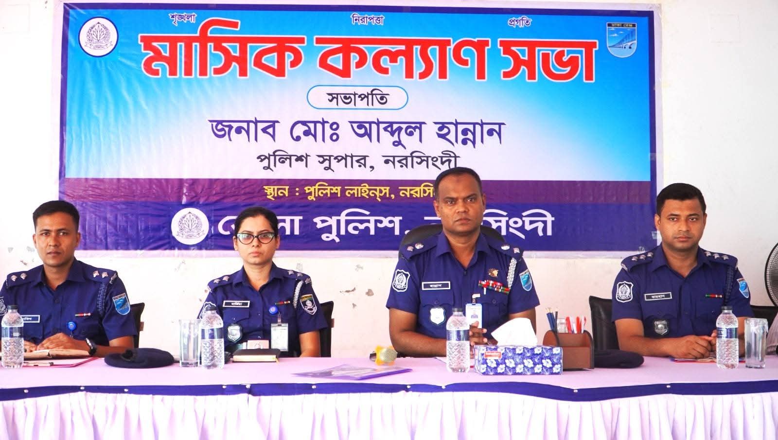 নরসিংদী জেলা পুলিশের মাসিক কল্যাণ সভা ও অপরাধ পর্যালোচনা সভা এক হৃদয়ছোঁয়া পরিবেশে অনুষ্ঠিত হয়েছে।