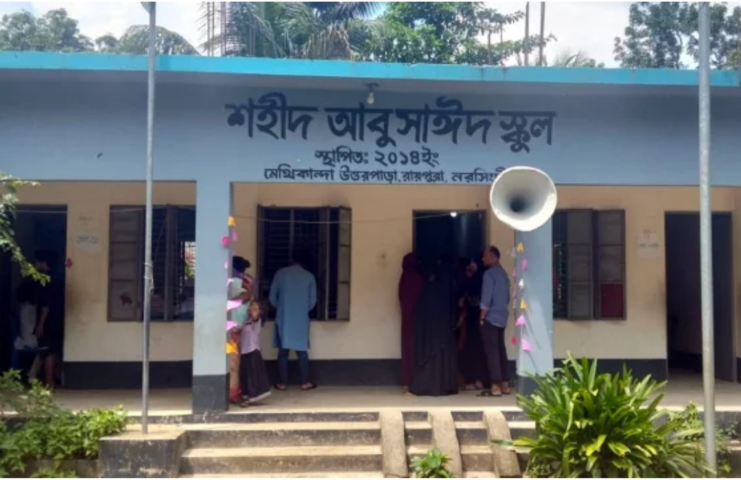 নরসিংদীর রায়পুরায় ‘শহীদ আবু সাঈদ স্কুল’ এর নামফলক উন্মোচন করা হয়েছে। সোমবার (৯ সেপ্টেম্বর) সকালে এক অনুষ্ঠানের মধ্য দিয়ে বিদ্যালয়ের নতুন নামের ফলক উদ্বোধন করেন রায়পুরা উপজেলা নির্বাহী অফিসার মো. মাসুদ রানা।