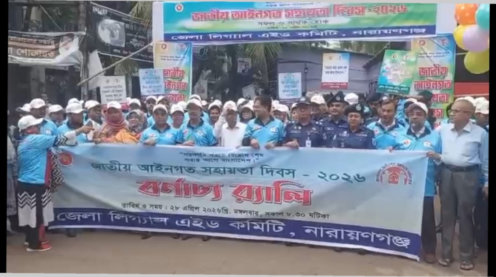 “সরকারি খরচে বিরোধ শেষ, সবার আগে বাংলাদেশ” প্রতিপাদ্যকে সামনে রেখে জাতীয় আইনগত সহায়তা দিবস উদযাপন করা হয়েছে নারায়ণগঞ্জে।