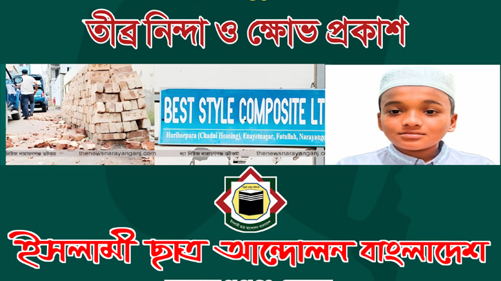 ইসলামী ছাত্র আন্দোলন বাংলাদেশ নারায়ণগঞ্জ জেলার সভাপতি মুহাম্মাদ সাইফুল ইসলাম ও সাধারণ সম্পাদক ফরহাদ হোসাইন এক বিবৃতিতে বলেন,