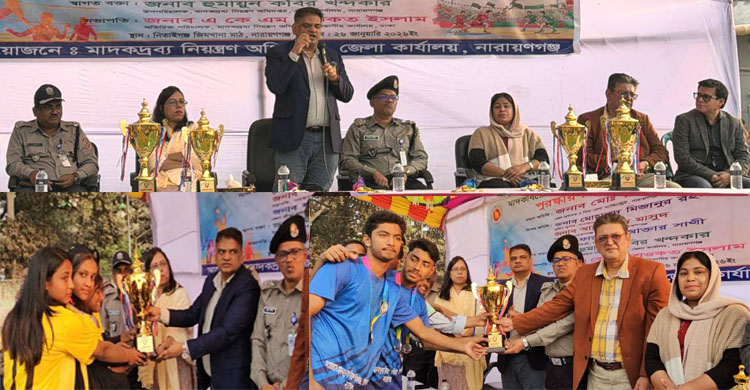 খেলাধুলার মাধ্যমে মাদকের বিরুদ্ধে জনসচেতনতার উদ্দেশ্যে মাদকদ্রব্য নিয়ন্ত্রণ অধিদপ্তর, জেলা কার্যালয়, নারায়ণগঞ্জের আয়োজনে ২৬ জানুয়ারি সোমবার জেলার সদর থানাধীন জিমখানা মাঠে “মাদকবিরোধী ভলিবল ও কাবাডি প্রতিযোগিতা ২০২৬” আয়োজন করে। নারায়ণগঞ্জ জেলার সকল উপজেলার ১২ টি স্কুল, কলেজ ও ক্লাব উক্ত প্রতিযোগিতায় অংশগ্রহণ করে। সকাল ১০ টায় উক্ত প্রতিযোগিতার শুভ উদ্বোধন করেন প্রধান অতিথি মাদকদ্রব্য নিয়ন্ত্রণ অধিদপ্তর পরিচালক মাজহারুল ইসলাম। প্রধান অতিথি মাদকের চাহিদা হ্রাসে খেলাধুলার সুযোগ বৃদ্ধি এবং সকলকে এ বিষয়ে সচেতন হতে অনুরোধ করেন।