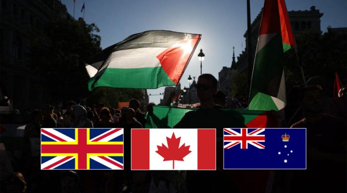 ফিলিস্তিন রাষ্ট্রকে আনুষ্ঠানিক স্বীকৃতি দিয়েছে যুক্তরাজ্য, কানাডা ও অস্ট্রেলিয়া। তিন দেশের পক্ষ থেকে পৃথক বিবৃতির মাধ্যমে এ স্বীকৃতির কথা জানানো হয়েছে। রোববার (২১ সেপ্টেম্বর) এক ভিডিওবার্তায় ফিলিস্তিনকে স্বাধীন রাষ্ট্রের স্বীকৃতি দিয়ে