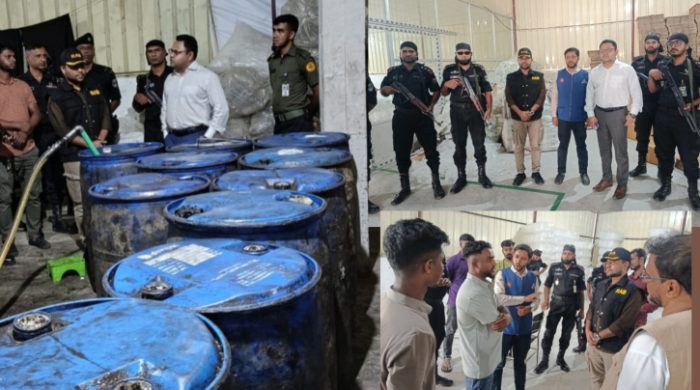 নারায়ণগঞ্জের রূপগঞ্জে ভোজ্য তেলের কৃত্রিম সংকট সৃষ্টির অভিযোগে মোবাইল কোর্ট পরিচালনা করে দুই প্রতিষ্ঠানকে মোট ১ লাখ ৫০ হাজার টাকা জরিমানা করেছে উপজেলা প্রশাসন ও র্যাব-১১। শনিবার (১১ এপ্রিল ২০২৬)