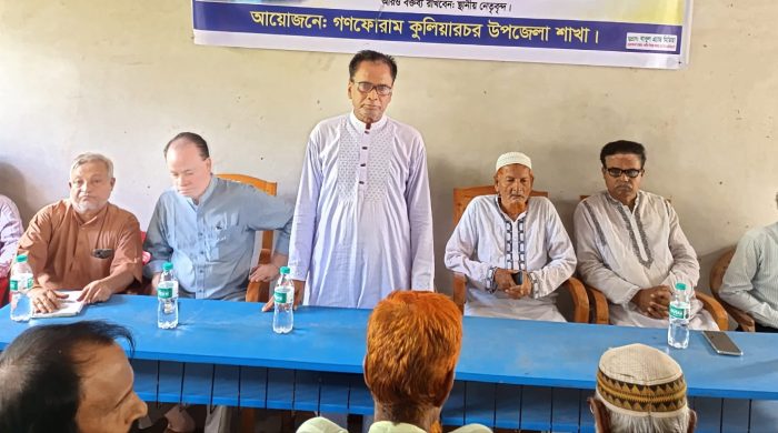 নুরুন্নবী ভূঁইয়া,কুরিয়ারের (কিশোরগঞ্জ) প্রতিনিধিঃ গণফোরাম এর ৩২তম প্রতিষ্ঠা বার্ষিকী উপলক্ষে কুলিয়ারচর উপজেলা উদ্যোগে আলোচনা সভা অনুষ্ঠিত। আজ সকালে দক্ষিণ আব্দুল্লাহপুর ভূঁইয়া সরকারি প্রাথমিক বিদ্যালয়ের হল রুমে আয়োজিত আলোচনা সভায় কুলিয়ারচর