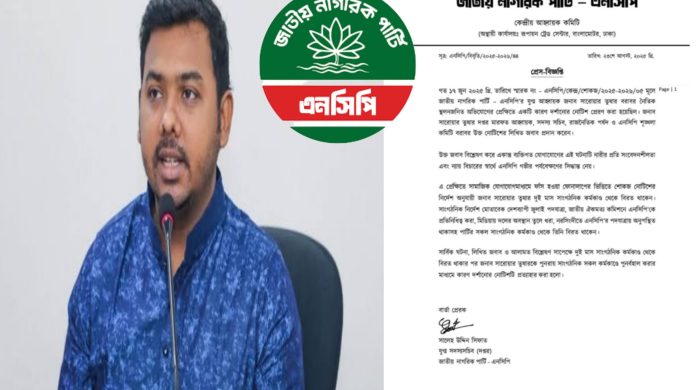 জাতীয় নাগরিক পার্টির (এনসিপি) যুগ্ম আহ্বায়ক সারোয়ার তুষারকে পুনরায় সংগঠনের সব কর্মকাণ্ডে অন্তর্ভুক্ত করা হয়েছে। একইসঙ্গে তার বিরুদ্ধে জারি করা শোকজ নোটিশও প্রত্যাহার করেছে দলটি। শনিবার (২৩ আগস্ট) রাতে এনসিপির
